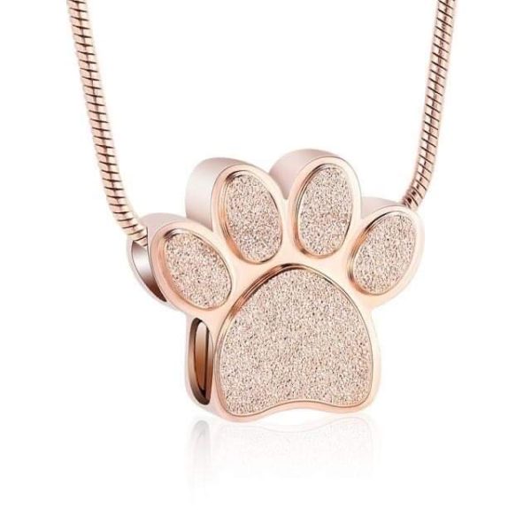 Keepsake pet jewelry is designed to keep the memory of your pet close to you by holding a small portion of your pet’s cremated remains. The Paw Pendant – Rose Gold is made of stainless steel with a rose gold color finish. Unscrew the bail to reveal a secret space for holding your pet’s ashes close.  Please Note: A basic 22 inch stainless steel chain is included. We recommend sealing the compartment closed after placing in the pet’s remains with clear super glue.
