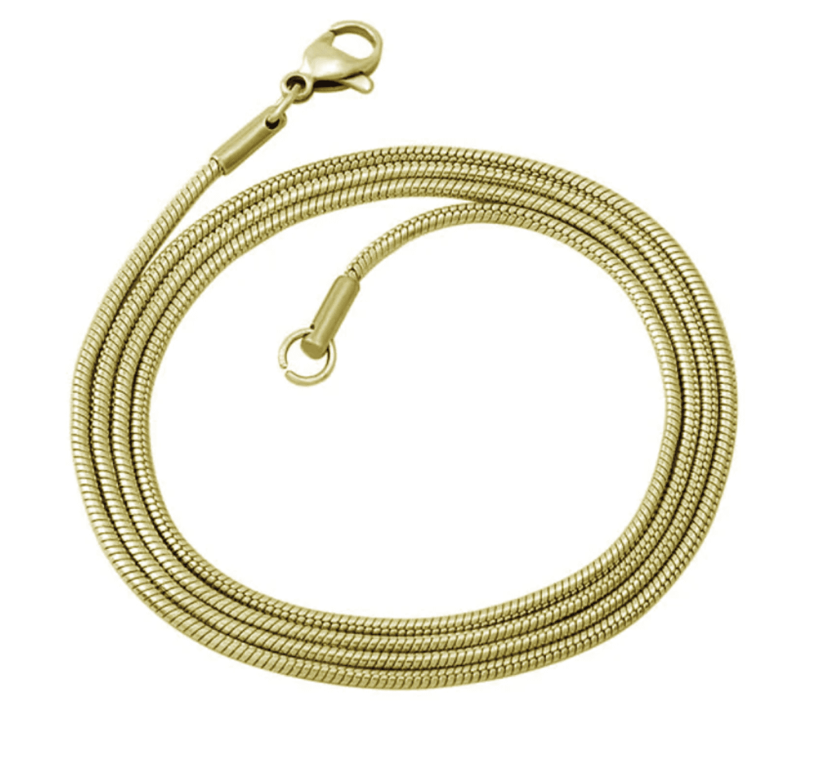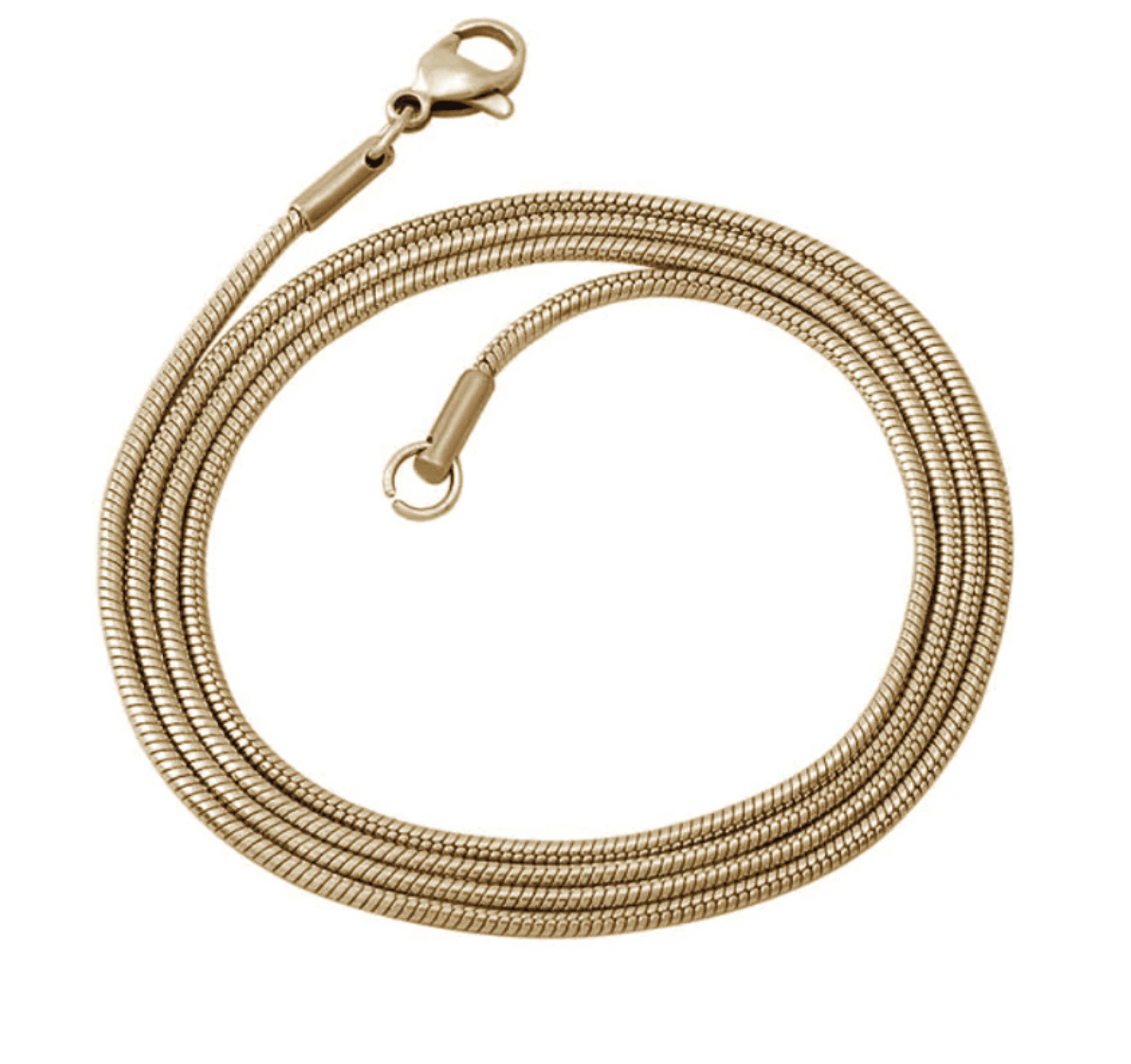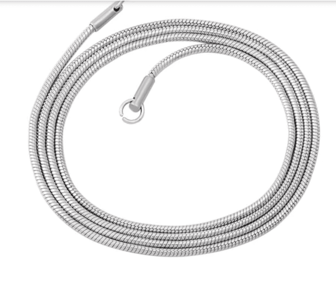 Add the popular stainless snake chain to your pendant order. High quality stainless steel with lobster claw clasp.